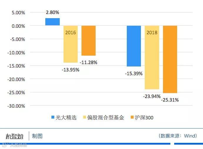 刚刚过去的2018年,沪深300跌幅25.31%,光大精选虽然收益也是负值,但在同类359只基金中排名第36。