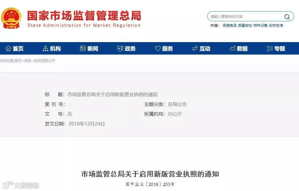 市场监管总局关于启用新版营业执照的通知
