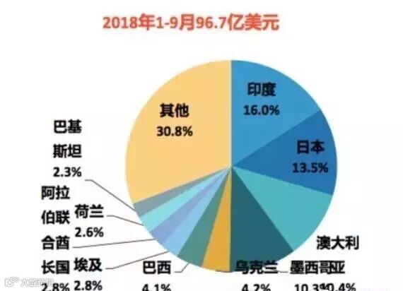 组件出口量为34GW,约为产量的61.9%,并已经超过2017年全年的出口量。组件出口市场的集中度继续降低,新兴市场(南美、中东北非)为主的遍地开花局面继续发展;