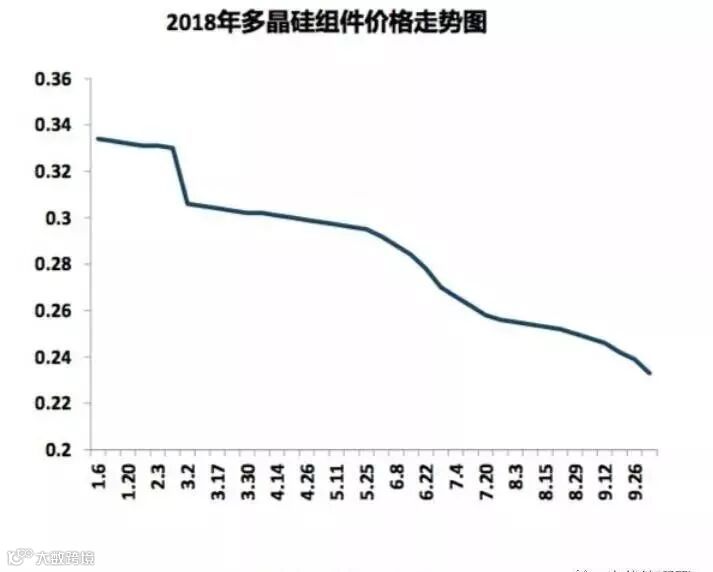 1-9月,组件产量54.9GW,同比增长约3.58%;其中,上半年组件产量约42GW,增长约24%。多晶组件价格趋势如下: