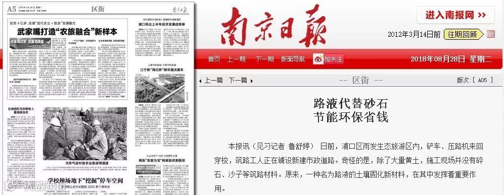 路液技术可广泛应用于路面基层、荒山复绿、土壤修复、轨道交通基层、软基处理、抑制扬尘、河道治理、生态农业等诸多工程领域,已通过江苏省科技厅高新技术产品认证。