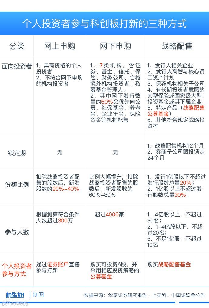 其实,早有机构进行研究了。华泰证券这份报告写的很清楚,网上申购主要面对个人投资者,而战略配售和网下申购主要面对机构。