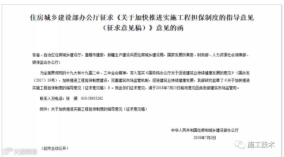 7月2日,住建部官网发布《关于加快推进实施工程担保制度的指导意见(征求意见稿)》,明确全面推行工程保函替代保证金制度。也就是说,以后投标保证金、履约保证金、工程质量保证金、农民工工资保证金通通不需要现金支付了。