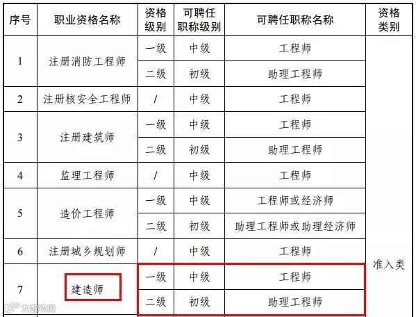 ♤ 通过全国统一考试,取得注册消防工程师、注册核安全工程师、房地产估价师、造价工程师、注册建筑师、建造师、勘察设计注册工程师等13项准入类职业资格证书的专业技术人员,其职业资格直接对应相应系列和层级的职称,两者享有同等效力。