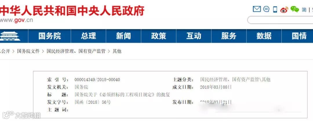 《必须招标的工程项目规定》已经国务院批准,现予公布,自2018年6月1日起施行。