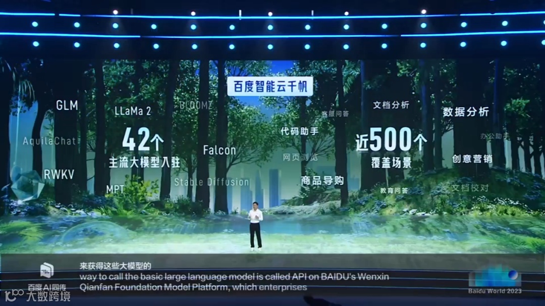 在大模型生态打造上的另外一个重要举措是百度智能云千帆大模型服务平台。这是一个AI原生应用的开发工作台,借助这个大模型平台,企业可以快速调用包括文心大模型在内的各种大模型API,借助这些大模型的能力打造自己的AI应用。