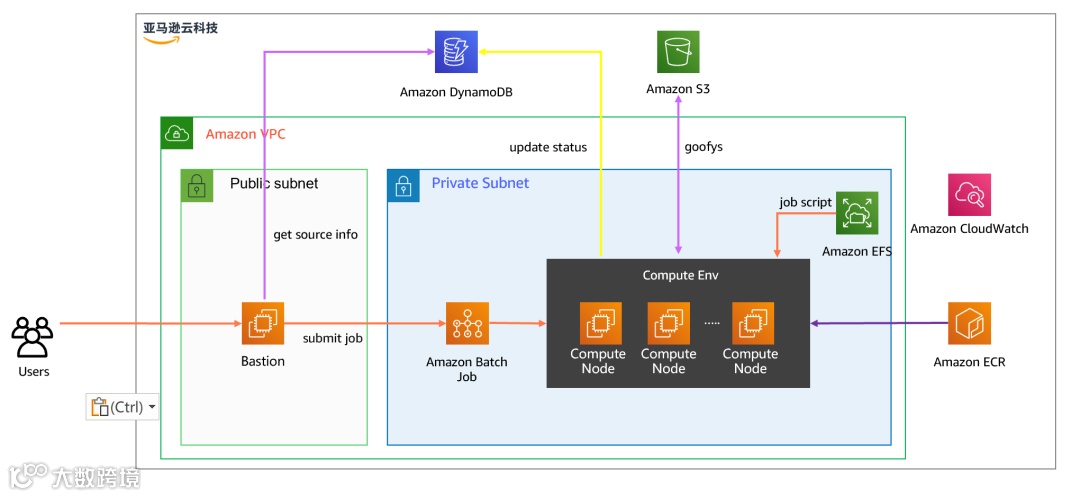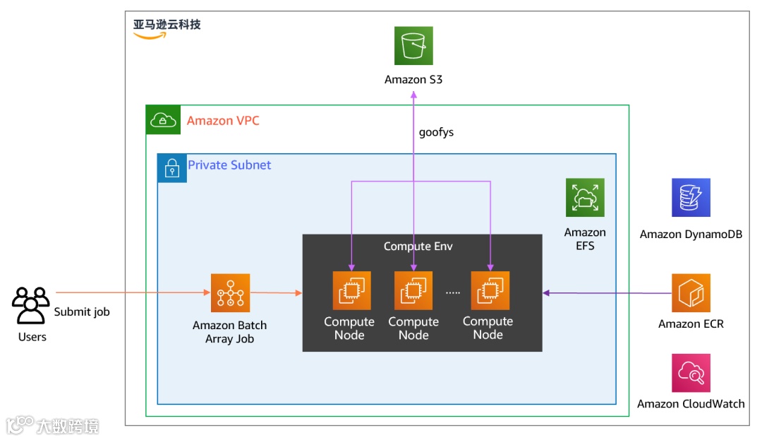 大规模微生物信息挖掘任务所使用的 HPC 涉及大量算力,如何让分布式算力得到妥善应用,需要对算力资源有良好而清晰的规划与安排。Amazon Batch 能根据提交的批处理作业的数量和特定资源要求,动态预置计算资源的最佳数量和类型,从而最大限度地提升计算效率和性能。即使科研团队需要同时运行数千个任务,同时启动大量的容器来处理,Amazon Batch 也能轻松调度。
