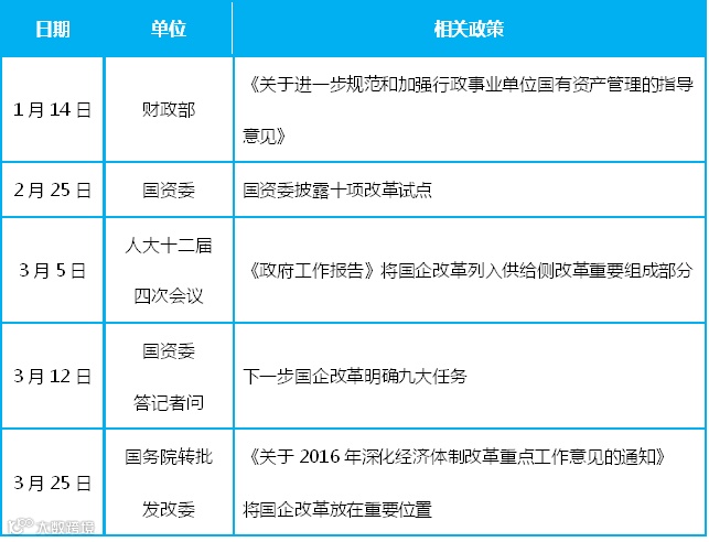伴随着从顶层设计基本完成向具体措施、试点方案逐步推进,国企改革有望在2016年步入“政策落实年”。