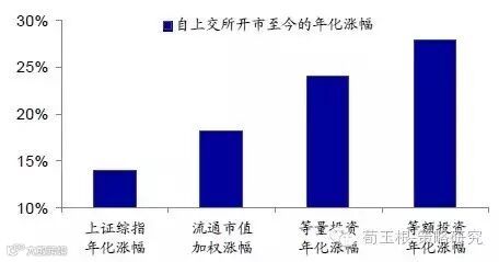 口径二:每年年初买入等量所有A股,A股等量投资涨幅为256倍,年化涨幅为24.0%。