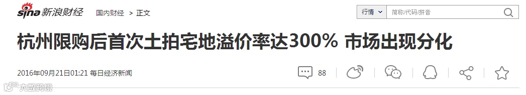 杭州重启限购后首日,地产商300%溢价抢地