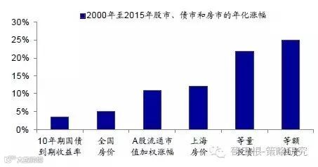 1998年中国开始实行住房体制改革,2000年房地产全面进入商品房时代,按照商品房销售额/销售面积,可推算从00年至15年全国商品房房价年化涨幅为5.1%,由于一线城市房产更具投资属性,以上海为例,同期房价年化涨幅达12.0%。