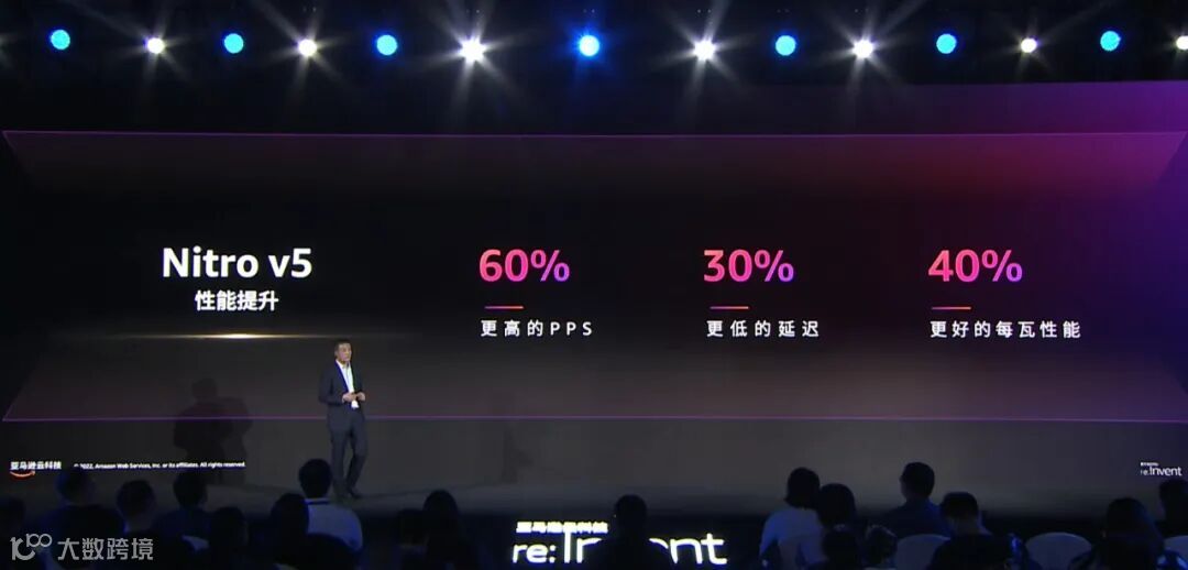 由于Nitro承担了很多底层的工作,也大大简化了新实例的发布,这也是2017年后EC2实例的推出速度明显提速的原因。目前亚马逊云科技已经有了600多款实例。今年的re:Invent大会上亚马逊云科技发布了第五代Nitro——Nitro v5,晶体管数量大约是上一代Nitro芯片的两倍,数据包能力提高了60%,延迟减少30%,每瓦特性能提升 40%。