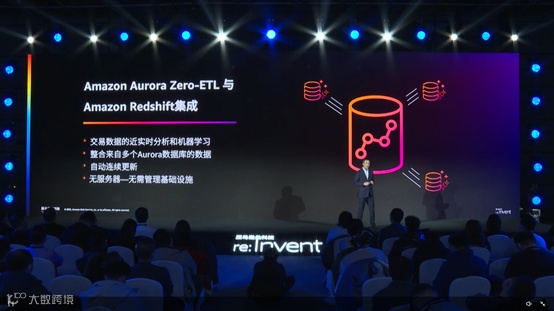 众所周知,在数据入数据仓库和数据湖之前,一般需要进行数据的预处理,简称ETL(数据的提取、转换和加载过程)。由于这种工作非常重要同时也非常繁琐,市场上有各种各样的ETL工具,但完成这个工作依然挑战重重。为了简化这项工作,亚马逊云科技在本次大会上发布了两项全新的集成功能,让用户“Zero-ETL”(零ETL)就可以享受数据分析服务。具体包括:使用Amazon Redshift可近乎实时地分析Amazon Aurora中的数据,而无需在不同服务之间进行ETL;使用Amazon Redshift的数据上可轻松运行 Apache Spark应用程序,也无需ETL,从而大大简化数据的准备工作。