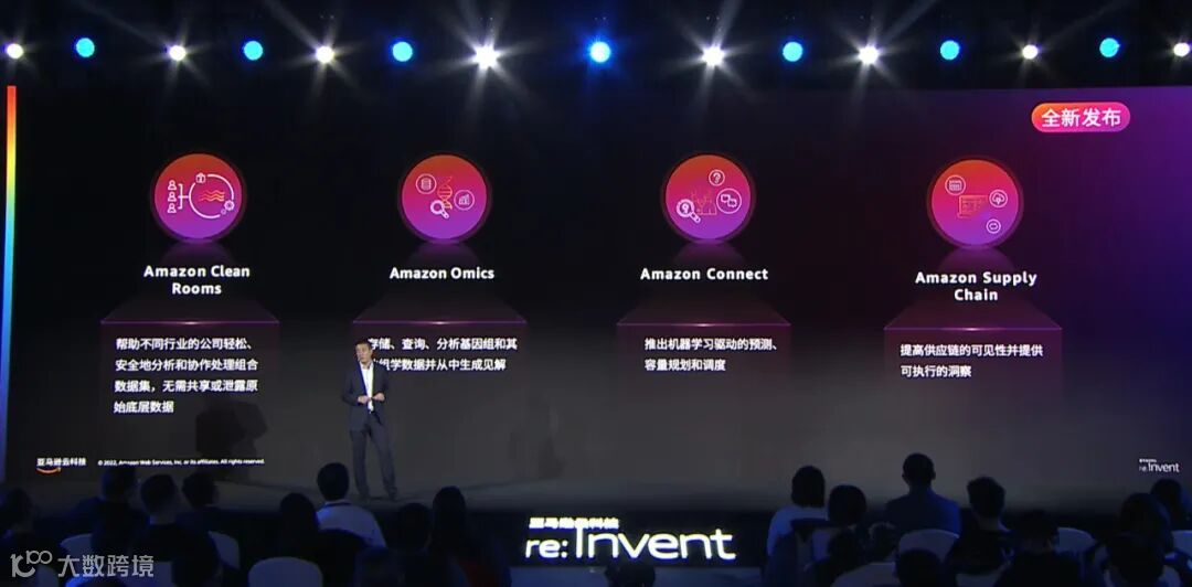 在亚马逊云科技不断夯实在底层基础技术上的同时,也将创新的触角延伸到行业应用。在2022 re:Invent全球大会上,亚马逊云科技发布了多项面向行业应用的服务,包括分析服务Amazon Clean Rooms、供应链服务Amazon Supply Chain、实现多组学和多模态的分析服务Amazon Omics以及呼叫中心服务Amazon Connect新增的三项功能等。