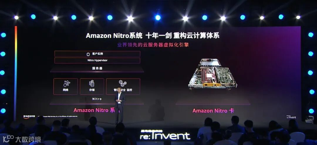 Nitro本质上是一款DPU,于2017年正式推出。Nitro采用独立的模块化设计,有一个非常轻量级的Hypervisor,性能损耗不到1%。有了Nitro,所有虚拟化、网络和存储工作都可以由它来完成,从而减轻了CPU的负担,大大提升了整个系统的效率。而且Nitro采用了硬件级别的安全机制,在数据传输的所有环节都可以实现硬件级别加密。