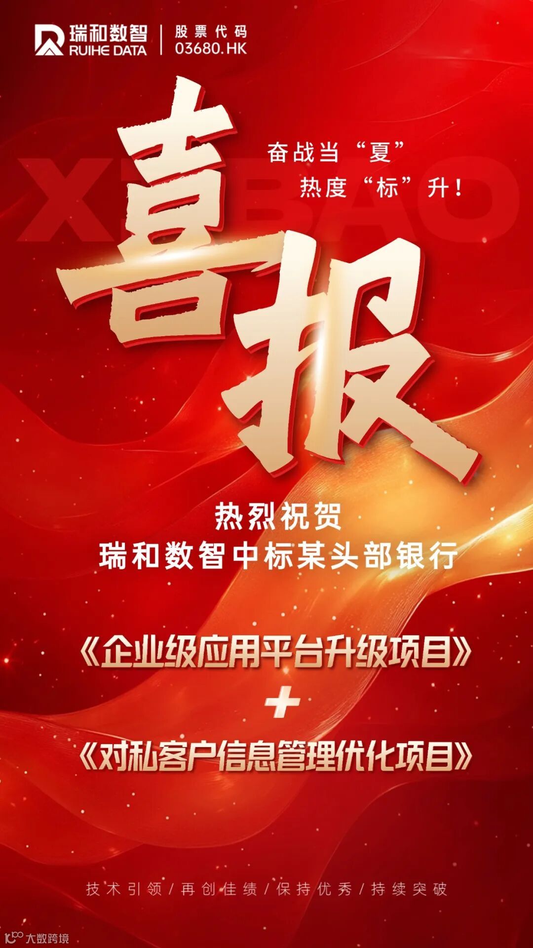 近日,瑞和数智凭借在金融科技领域领先的技术实力与深厚的行业积淀,连续中标某头部银行“企业级应用平台升级”和“对私客户信息管理优化”两大项目,此次连中两元,充分彰显了头部银行对瑞和数智专业实力的高度认可。