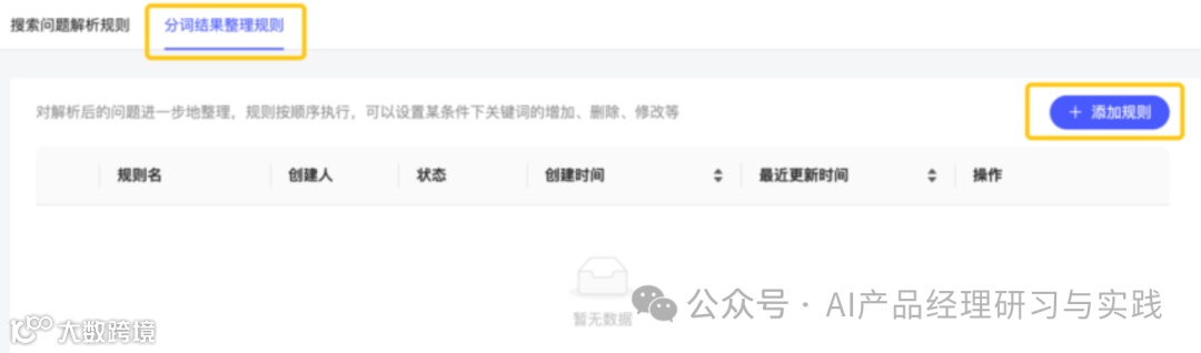 “分词结果整理规则”是该产品中的一项高级功能,旨在帮助用户进一步优化和精确化系统对自然语言查询的理解和处理。通过为分词后的查询结果设定一系列条件和操作规则,系统能够更智能地解析用户输入的问题,并生成更符合用户期望的查询结果。这一功能对于提高系统的自然语言处理能力、增强用户体验具有重要意义。