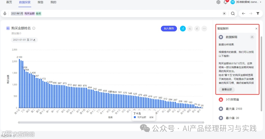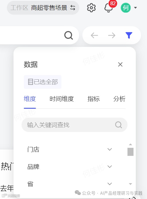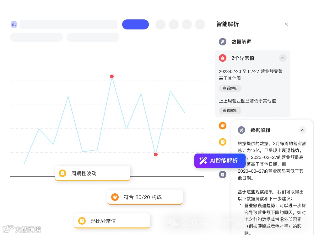 维度分析:开启后,系统会根据用户查询的数据自动进行维度分析,例如将数据按地区、产品类别等不同维度进行细分,从而提供更为细致的分析视角。
