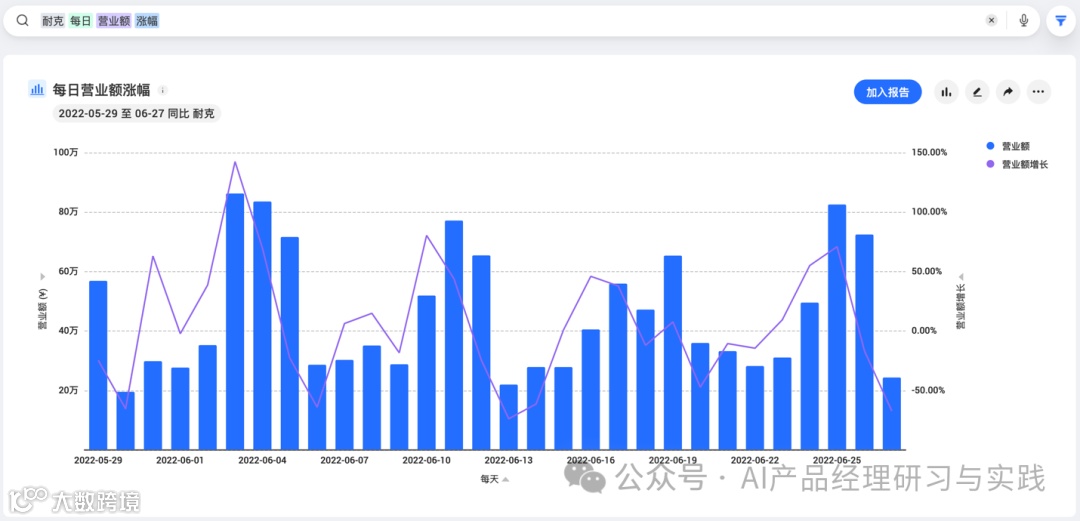 例如,搜索“耐克营业额”,系统则会默认展示前30天的数据↓