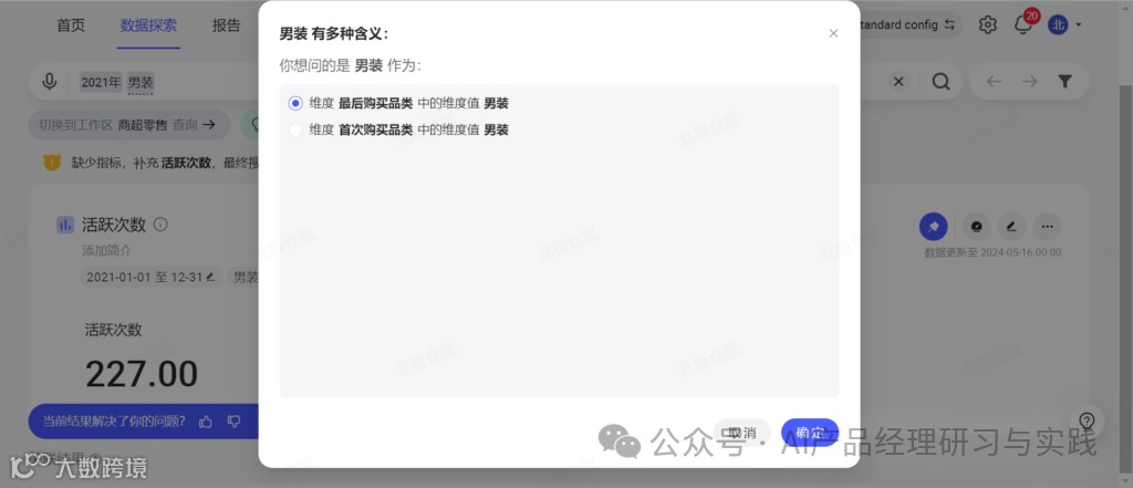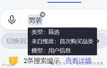 当用户选择具体的含义后,对应的条件将会被应用至搜索框,并为其查询对应的维度条件。
