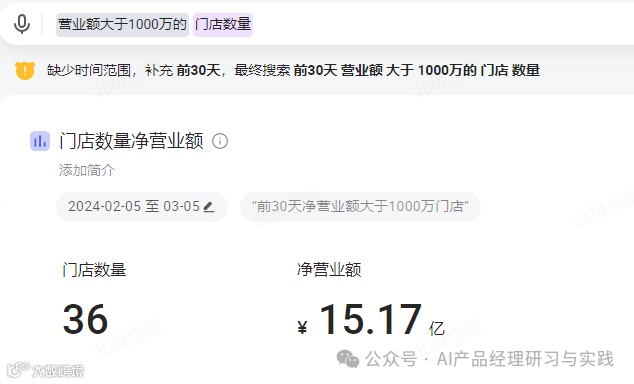 默认时间范围:在查询数据时,系统通常需要设定一个时间范围。如果用户在查询中没有明确指定时间范围,系统会自动补全一个默认的时间范围。例如,当用户查询“北京门店每季度的销量”但未指定具体时间时,系统会默认展示前12个季度的销量数据。这种设计不仅提升了查询的便利性,还避免了用户因遗漏时间范围而收到无效或不相关的结果。