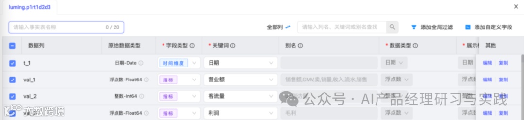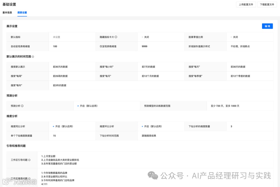 这些配置使得系统能够理解用户的自然语言输入,并进行精确的结构化查询。这也是AI+BI产品中极为重要的一环。