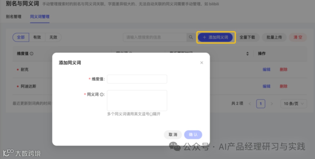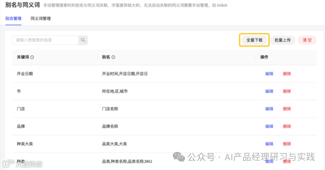 别名和同义词管理:借助大语言模型的能力,系统可以根据数据中的自然语言内容自动生成同义词,用户也可以手动添加。这一功能极大地提升了系统的语义理解能力,确保用户使用不同表达方式时,系统仍能准确解析。当然,用户也是可以自行维护的,比如当系统无法自动关联同义词时,用户也可以手动添加同义词,如“上海”和“申城”。