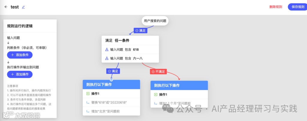 搜索问题解析规则:用户可以为搜索问题设置解析规则,自动替换或补充关键词。这种规则化的配置使得系统能够在面对复杂查询时仍保持高效的解析能力。