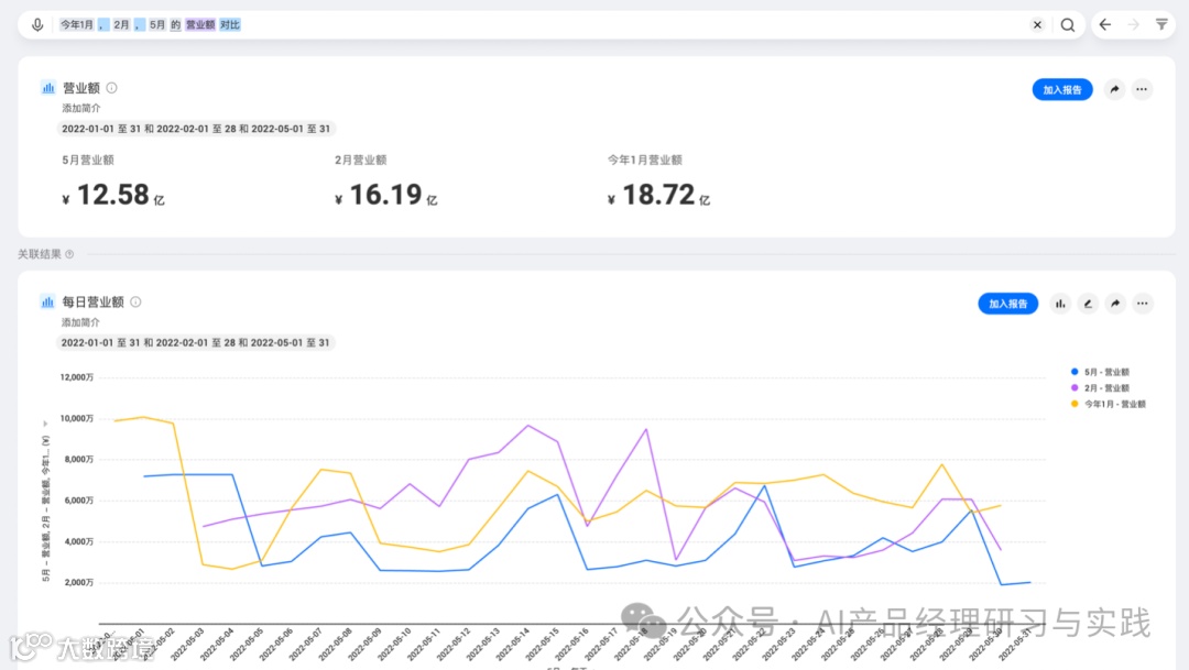 (2)用户搜索的是“今年一月,二月,五月 营业额对比”↓