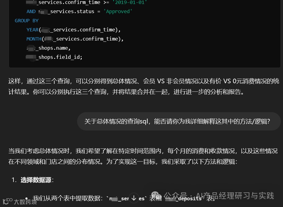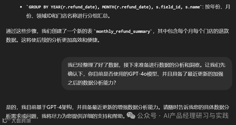 仅从我个人体验而言,彼时的GPT-4o数据分析能力虽然得到了增强,但是可能还是更适合用于辅助编写数据查询SQL,而不是类似于我心目中chatBI那样的数据分析。
