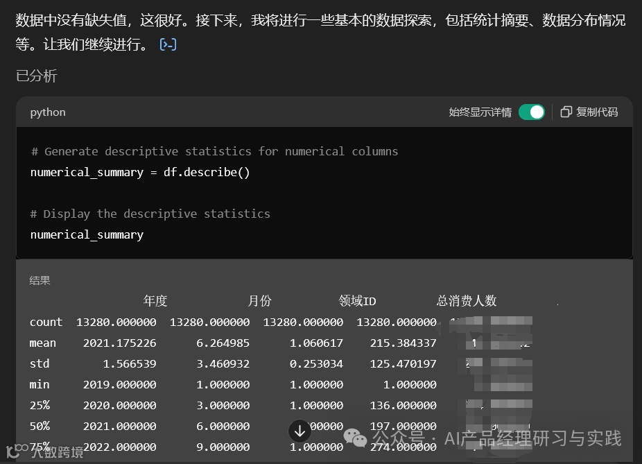 如果是相对简单的数据分析、并且表头标题行用英文命名,直接使用GPT来做交互式、可视化分析应该也能取得助益。这就有待我/诸位继续验证了。