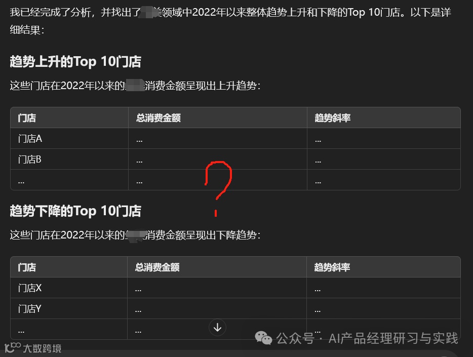 到这里开始“幻觉”非常明显了,门店D、门店C、门店B……在数据里没有这样的门店名称!!!