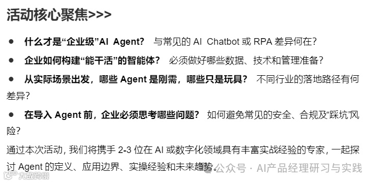 PS:我正在筹划组织一场《企业级AI Agent专题交流》的线上活动,目前已确认两位大咖嘉宾。有兴趣参与的朋友,记得留意!