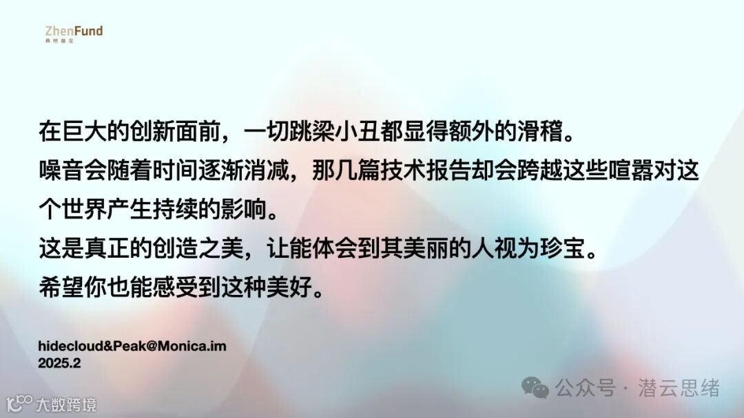和真格联合推出了一个面向非技术人群(我怎么每次都是面向这个人群😂)的 DeepSeek R1 创新亮点分享会(由我司首席科学家 Peak 提供 tech review,确保我没有瞎讲)。