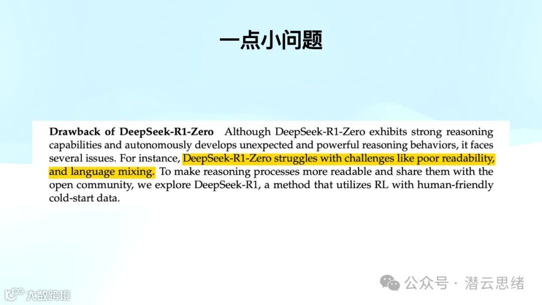 用通俗易懂的方式带大家过了一次 R1 和 V3 的技术报告。让你可以理解在这之前业界都有哪些问题和疑惑,DeepSeek 是怎样去解题的,以及其中的几个重要闪光点。