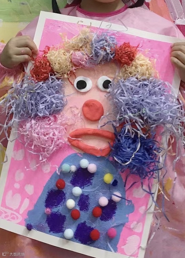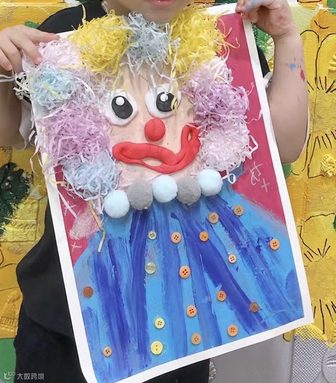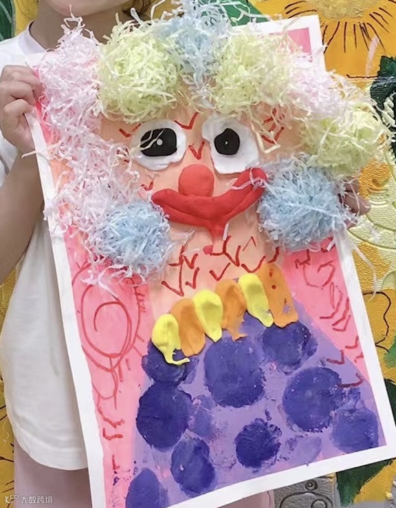 这位小朋友创作的小丑惊讶神情刻画到位,