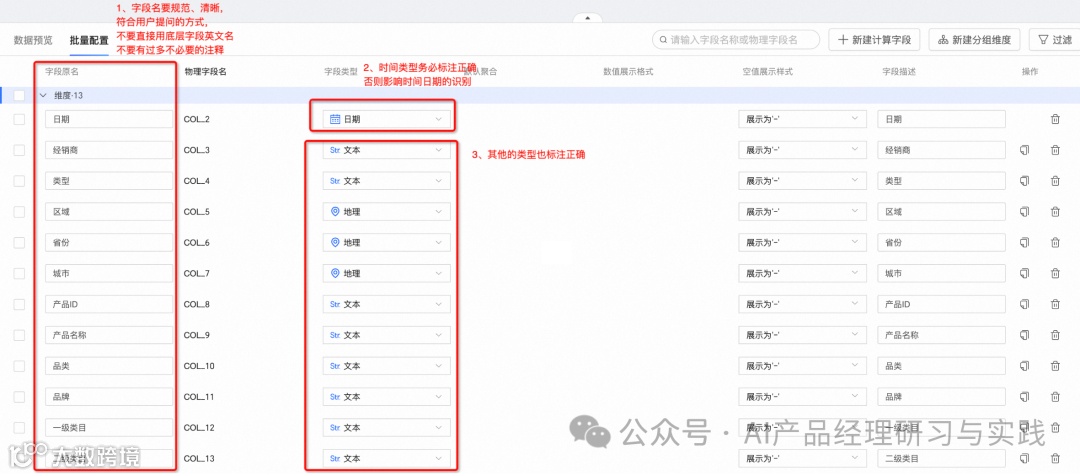 字段类型需要争取标注,例如日期/时间类型的数据,否则将影响识别