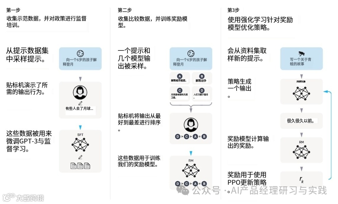 (3)在这个奖励模型上通过邻近策略优化 (PPO) 进行强化学习。