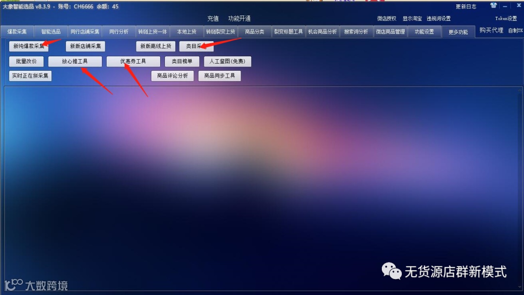 自动拼团,自动拍单,自动发货,标题组合,抓词工具,群控上传,自动上下架,全店推广,大额券设置