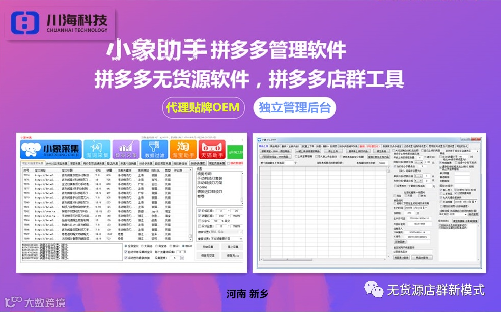 1.采集,采集速度飞快,主要采集拼多多一手商家