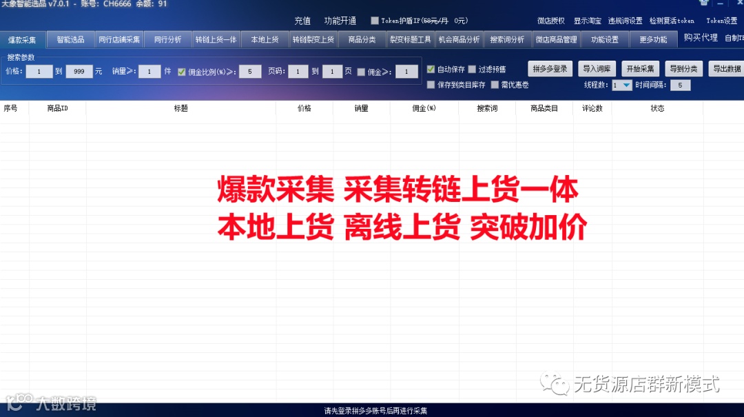 拼多多数据转链上货:拼多多链接导入软件,只需挂一个微店,即可实现自动将拼多多链接格式转微店格式上到拼多多店铺,支持减价做截流,支持突破加价做高利润。