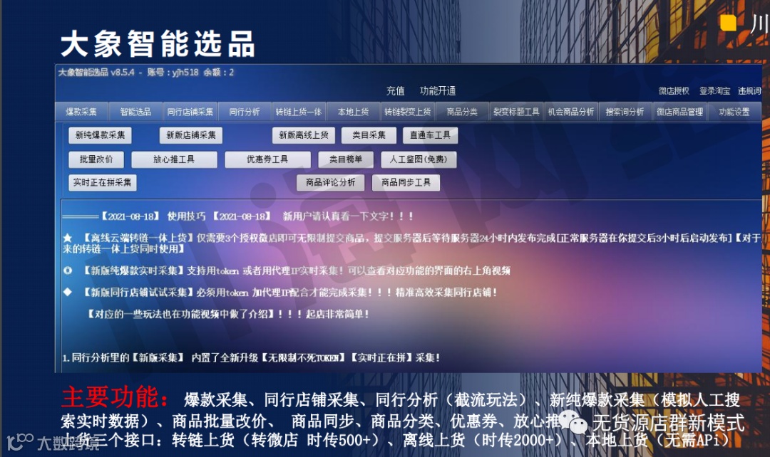 大象智能选品上货功能包括