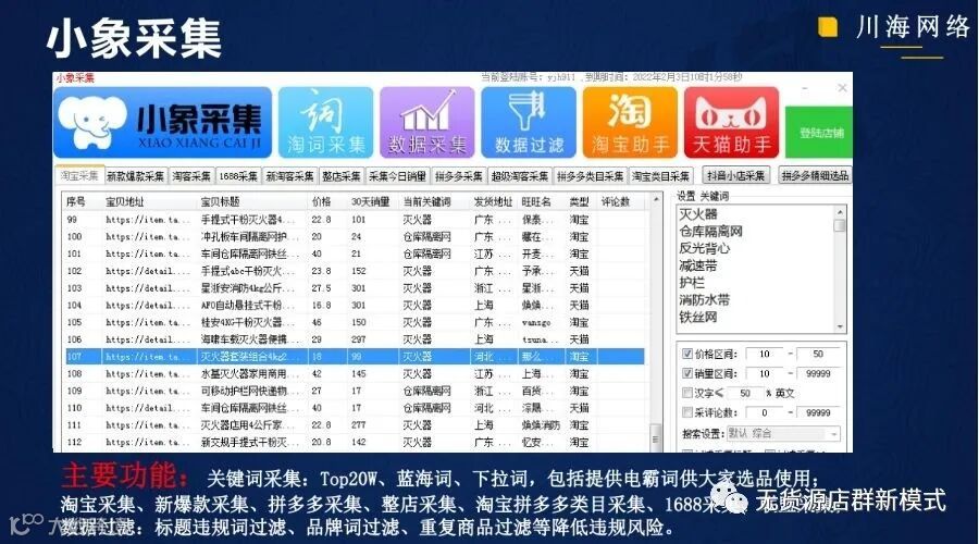 (8)生意参谋、全网查商品搜索人数占比,搜索人气,在线商品数,点击率等等,店群精细化操作功能。