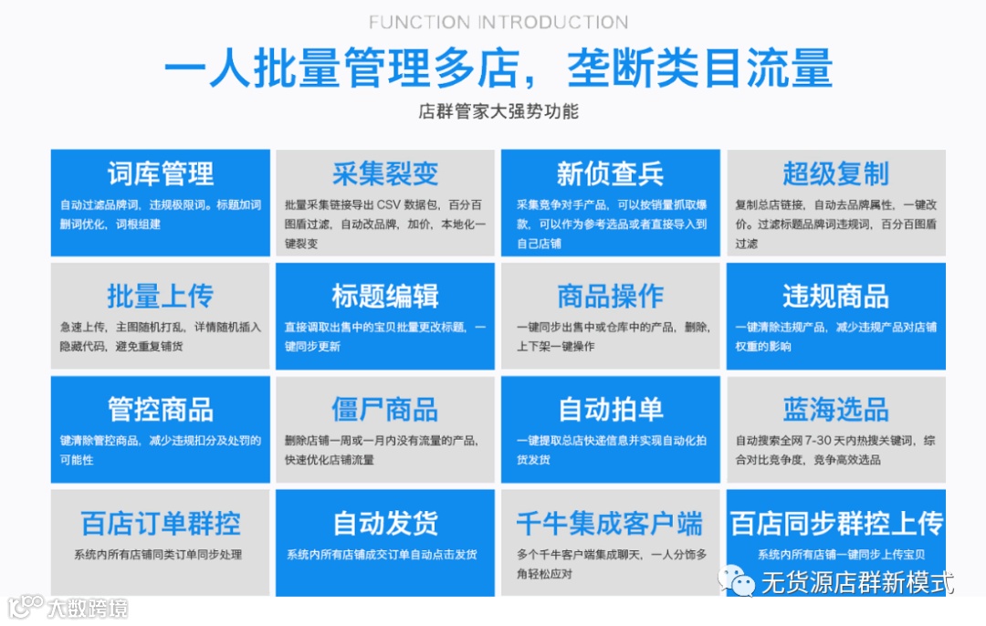 更多功能功能:拆分标题、组合标题、裂变标题、查询总店、主图视频解析、外网商品查询等。
