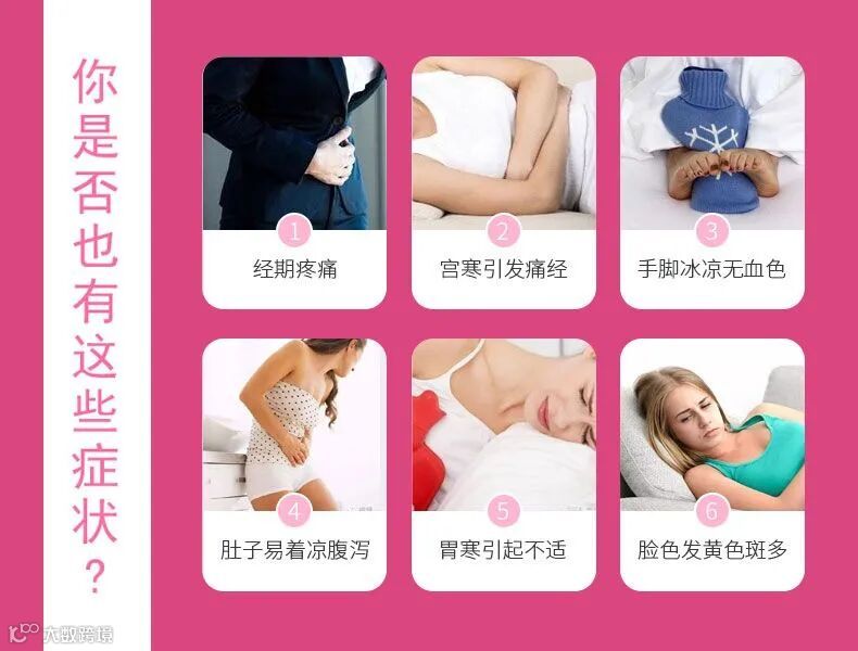 响当当e购女人如花,生殖为根。根深叶茂花自鲜,但是女人最大的健康隐患就是宫寒,中医讲:十女九寒(十个女人有九个宫寒)。寒则湿,湿则凝,凝则瘀,瘀则堵,堵则瘤,瘤则癌。宫寒是引起痛经,月经不调,甚至是女性朋友不孕不育的罪魁祸首。同时,宫寒还会引起黄褐斑,脸色发黄,黑眼圈等。