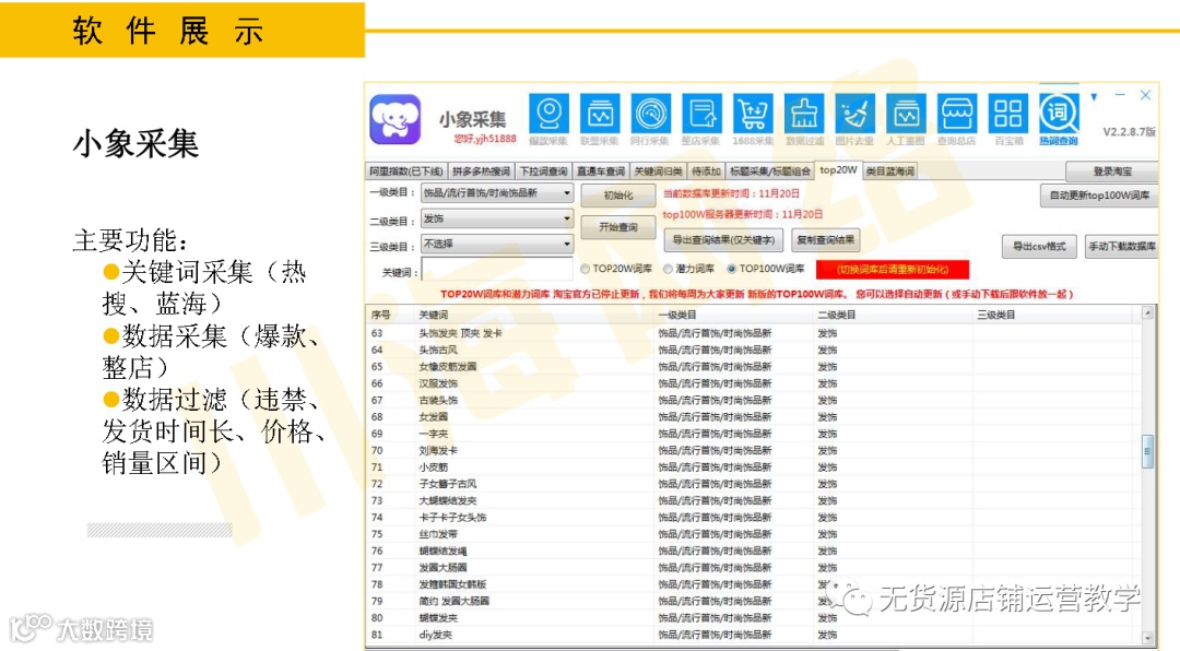 1、个人版,适合个人兼职全职做店铺,提供精细化运营教学,(教学做精品店和铺货店铺的运营思路,包含店铺主营类目、关键词、热搜关键词的选择、选品、上货之后的运营思路,报活动,做精细化运营等)。