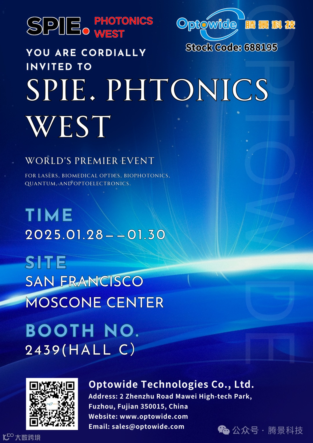 Optowide Technologies will participate in the 2025 SPIE.Photonics West in San Francisco, USA, from January 28 to 30.