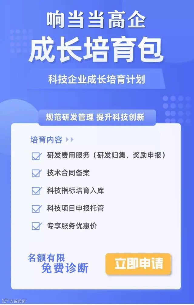 响当当推出科技企业成长培育计划,包括研发费用服务、技术合同备案、科技指标培育入库、科技项目申报托管多项培育内容,现开通20位免费诊断服务,先到先得!为科技企业提供全方位深度支持,全程支持,响当当专家1对1服务,进度清晰可查。