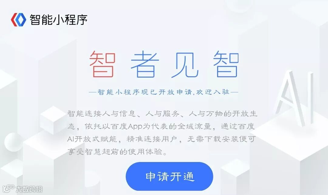 7月5日,百度AI开发者大会上,百度副总裁沈抖正式对外发布百度智能小程序;9月25日,百度智能小程序宣布日活破亿,同时开放申请,但暂时只面向企业、媒体、政府、机构等非个人开发者群体。