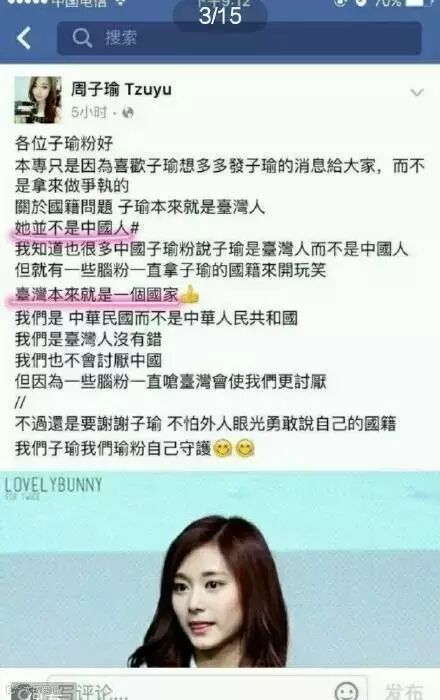 这件事要从两大卫视春晚邀请了JYP新人女子组合twice说起,这个组合里有一个来自台湾的女孩叫周子瑜,曾多次在韩国综艺节目里表示自己是台湾人,不是中国人。